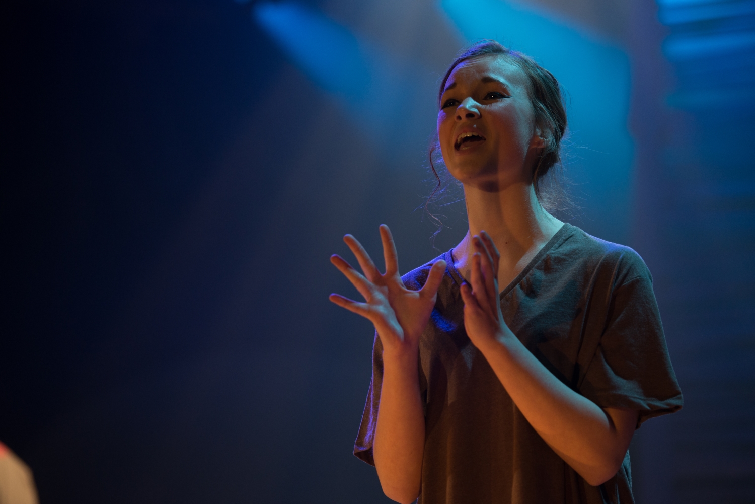 The venue has no equipment or lighting bars of its own so all rigging points were also created by the team installing the lights. There is also very little power available so a lot of thought had to go in to the selection of lighting fixtures used and at what point in the show they would be on.